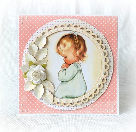 Oczywiście kartkowo. Tym razem połączenie ciepłych kremowych i brązowych kolorów z nieco zimnym różem i bielą.